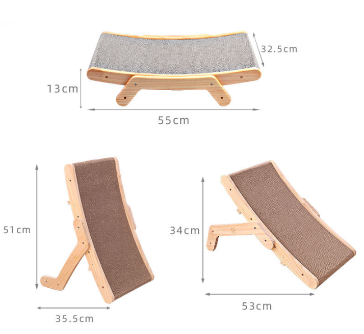 Crafted from eco-friendly wood and durable corrugated cardboard, this scratcher features a sleek, adjustable design that allows you to change the angle or layout based on your cat’s preference. Whether lounging, scratching, or stretching, your kitty will love this multifunctional haven.